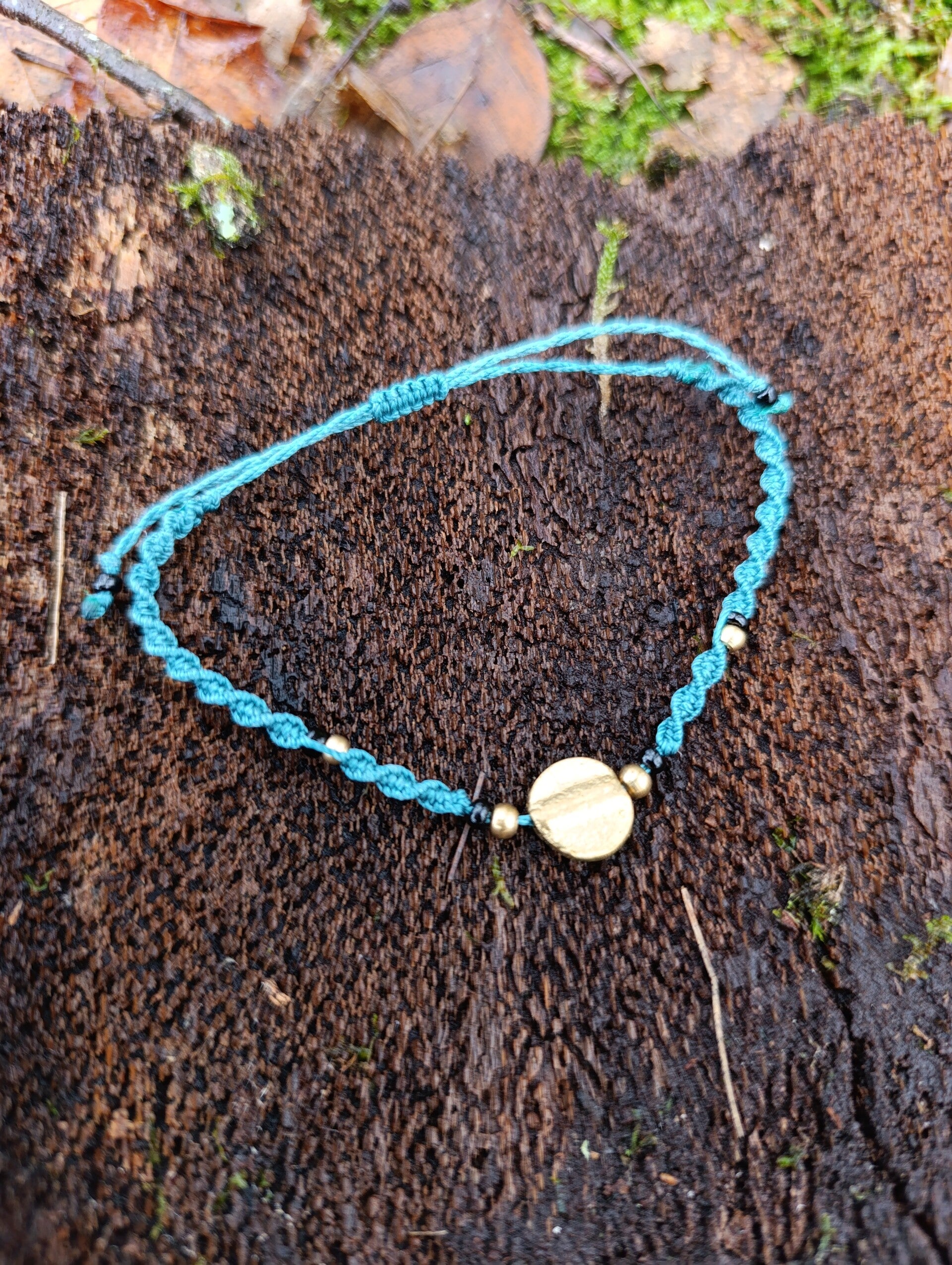- Matériau : fil C-LON ou fil Linhasita + perles en laiton brut (Inde) + perles de rocailles noires